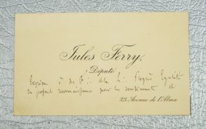 [Franc-Maçonnerie] Carte de visite de Jules FERRY avec texte autographe.