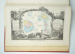 52,5 par 38 cm. Demi-chagrin rouge à coins d'époque, plat titré à l'or et encadrement à froid, dos lisse avec caissons ornés. Quelques plissures superficielles sur les mors, papier des charnières intérieures coupés. Page de titre gravée, et 102 cartes en couleurs, et très décorées : 89 départements, et 13 cartes sur les possessions françaises, dont l'Algérie, l'Ile Bourbon, l'Océanie, etc.