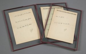 PEGUY (Charles). " L'Aveugle ". Poème autographe signé, daté du 29 juillet 1912 ; 5 pages in-8, en-tête des Cahiers de la quinzaine (monté en 3 sous-verre, trace de pli très légère). Le texte du poème est précédé de : " Voici un premier...