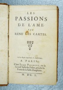 DESCARTES (René) : Les passions de l'âme. Sur la copie imprimée à Amsterdam. Paris, edme Pepingue, 1650. Un volume.