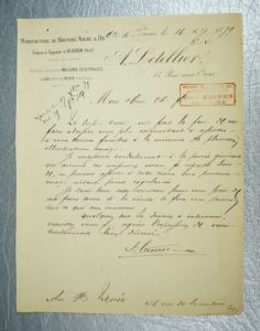 On joint 6 courriers à contenus maçonniques écrits par le Frère Letellier, sur papier à en-tête de son entreprise (1874-1879).