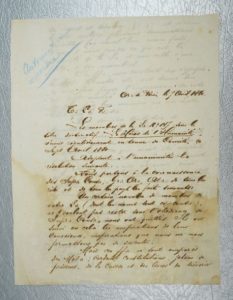 Une lettre manuscrite de 3 pages, datée du 7 avril 1880, signée par le Vénérable et les Officiers de la Loge, au sujet de Frères démissionnaires de la Loge ayant emporté le matériel de la Loge Avec le nom des Frères dissidents.
