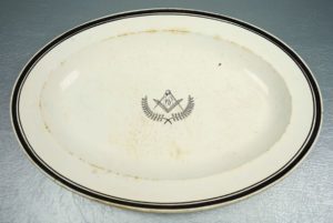 [Franc-Maçonnerie] : Un plat en faïence avec un décor franc-maçonnique (19ème siècle).