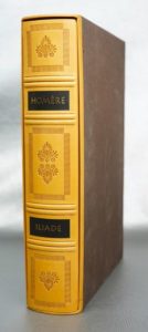 23,5 par 32,5 cm. 256 pages plus 10 feuilles de la suite au trait. Plein veau havane d'éditeur, plat supérieur à décors estampés encadrant un cartouche biseauté, illustré d'un guerrier grec. Marque de l'éditeur estampé sur le 2ème plat. Titre et auteur dorés sur pièce de cuir noir, toutes tranches dorées, gardes en tissu moiré, contreplats encadrés d'un filet doré. Sous étui bordé.