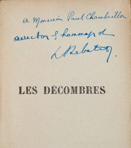 REBATET (Lucien). Les décombres. Paris, Denoël, 1942, fort in-12 ; broché (dos jauni, coins des ff. un peu arrondis). Édition originale sur papier courant (il n'y a eu que 50 grands papiers). Envoi autographe signé à Paul Chambrillon