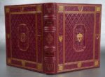 19,5 par 25 cm. Pleine basane maroquinée bordeaux d'éditeur, plats gaufrés d'un décor à froid avec médaillon central estampé, fleurons aux angles, dos à 4 nerfs double à caissons ornés, têtes dorées, gardes en soie, étuis bordés. Richement illustré par Jean GRADASSI.