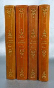 24,5 par 32,5 cm. Demi-basane fauve d'époque, dos orné en long de motifs romantiques, couvertures et dos conservés (reliure de l'éditeur). Un choc sur le bas du plat supérieur du tome 1, infimes épidermures (sans aucune gravité), parfait état intérieur.