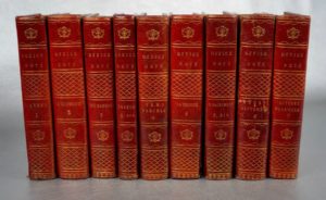 10,5 par 17 cm. Plein maroquin rouge à long grain, dos lisses ornés, plats encadrés d'une roulette dorée à motif grec, toutes tranches dorées, gardes en soie bleu pâle, roulette sur coupes (reliure début 19ème ). Frontispices et nombreuses gravures de Tardieu. Quelques rares rousseurs, sinon très bel état.