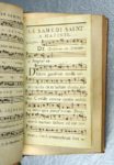 Exemplaire enrichi de textes supplémentaires, de partitions de chants grégoriens additionnels et manuscrits, etc. On trouve même des prières pour l'Empereur, où les Imperator ont été remplacés manuscritement par Rex, ce qui permet de dater la reliure de ce magnifique ouvrage de la Restauration.