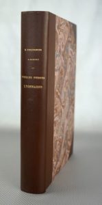 25 par 32 cm. (6)-327-(1) pages + 5 eaux-fortes h.t. + 25 planches h.t. Demi-chagrin brun à coins, couvertures illustrées d'eaux-fortes conservées, ainsi que la chemise de protection d'origine. Reliure moderne très bien exécutée. Reliure en parfait état, tout comme l'intérieur de l'ouvrage. Seule la chemise de protection a de petits manques.