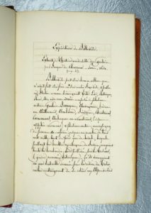 13 par 20 cm. Environ 280 feuillets (560 pages) constituées de textes divers sur la Dombes, recopiés, vraisemblablement dans la vue de rédiger un livre d'érudition. Certains textes, difficiles d'accès, sont rares. Demi-chagrin strié rouge, d'époque, dos lisse décoré, pièce de titre noire (usée). Ce livre a appartenu à Valentin SMITH.