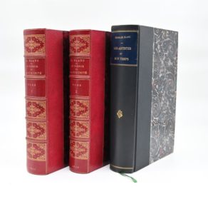 BLANC (Ch.). Le Trésor de la curiosité, tiré des catalogues de ventes de tableaux, dessins, estampes, livres… Avec diverses notes et notices historiques et biographiques et précédé d'une lettre à l'auteur sur la Curiosité et les curieux. P., Renouard, 1857-58. 2 vol. in-8, demi-maroq. r., coins, dos orné, tête dor., n. r. (Allô).