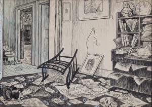 PISSARRO (Lucien). [ZO D'AXA] " Malfaiteur. L'arrestation " [1895] Dessin à l'encre, plume et rehauts de gouache et de crayon bleu, signé du symbole en bas à gauche. 14 × 19,5 cm. Dessin original pour l'illustration du livre de Zo d'Axa...