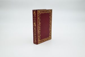 ALMANACH. La Guirlande des Dames. P., Marcilly, s. d. (1816). In-18, maroq. rouge à grain long, plats encadrés d’une roulette dorée et d’une jolie guirlande florale, dos lisse orné de diverses fleurs dorées, tr. dor., étui de maroq. orné d’un décor identique à celui de la reliure (Rel. de l’époque).
