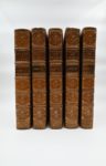 De BRUYN (Corneille Le Brun, alias Cornelis). Voyage au Levant, c’est à dire dans les principaux endroits de l’Asie Mineure, dans les Isles de Chio, de Rhodes, de Chypre etc... De même que dans les plus considerables villes d’Egypte, de Syrie et de la Terre Sainte [...] enrichis d’un grand nombre de figures en taille-douce…À Paris, chez J. B.-Cl. Bauche le fils et à Rouen, chez Ch. Ferrand et R. Machuel, 1725. 5 vol. in-4, maroq. citron, dos ornés aux petits fers avec pièces titre et tom. de maroq. citron foncé, triple fil. d’encadr. sur les plats, armes poussées au centre, petite dent. intér, tr. dor sur marbrures (Rel. anc.).