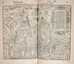 importante (voir Gallois : Les Géographes allemands, p. 190 à 236). 12 ff., 14 cartes en double page, 1162 pp. et 1 ff., avec des feuillets doubles pliés pour les vues de Vienne, Florence et Worms (les 8 ff. de ce dernier plan n’étant pas compris dans la pagination). Harisse, 300 ; Leclerc, 396, donnent tous deux des collations incomplètes. En plus du titre gravé du portrait de Münster et des 14 grandes cartes, le volume est orné de 39 belles vues de villes qui paraissent ici pour la première fois et qui sont remarquablement gravées parmi lesquelles le plus ancien plan de Paris et 1021 figures dans le texte. On remarque plusieurs monogrammes de graveur : R.M.D. (Rodolphe Manuel Deutsch) pour la pl. du crocodile, le plan de Paris est signé Hans Manuel Deutsch, monogramme D. K. (David Kendel) sur d’autres pl.