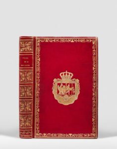 RELIURE AUX ARMES DE MARIE-LOUISE, Impératrice des Français. Mahlerische ansichten des Rheins von Mainz bis Düsseldorf. Franckfurt am Mayn, 1806. 3 parties en un vol. in-8, maroq. rouge à grain long, dos très orné de motifs au pointillé, encadr. de fil. et de guirlande florale sur les plats, armes au centre, dent. intér., doubl. et gardes de tabis bleu ciel, tr. dor. (Deforge).