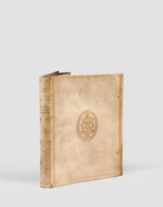 TURRIANUS (Franciseus). Ad illustrissimum… Principem… D. Wilhelmum, Landgrauium Hassiae…, posterioris defensionis locorum Scripturae de una Ecclesia Catholica in terris visibili, & de Episcopo ejus Pontifice Romano : contra secundas cauillationes A. Sadeelis lutherani. Liber Primus et Secundus. Ingolstadii, Ex Officina Typographica Wolfgangi Ederi, 1583. In-4, vélin souple ivoire, encadr. de 2 fil. dorés, dos lisse avec le titre et le chiffre de de Thou 4 fois répété, tr. dor., traces d’attaches de ruban (Rel. de l’époque).