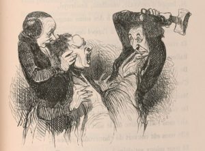 DAUMIER (H.) – FABRE (FR.). Némésis Médicale illustrée. Recueil de satires par François Fabre, Phocéen et docteur, revue et corrigée avec soin par l’auteur ; contenant trente vignettes par M. Daumier et gravées par les meilleurs artistes, avec un grand nombre de culs-de-lampe, etc… Paris, au Bureau de la Némésis Médicale, 1840. 2 vol. in-8, demi-veau vert, dos orné d’encadr. de fil., coins, n. r., couv. et dos cons. (Rel. vers 1890).