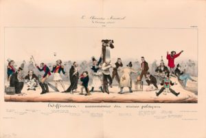 COLLECTION COMPLÈTE des 251 livraisons de cette célèbre publication, on y trouve des articles signés par H. de Balzac, Hugo, Desnoyers, etc.. et 530 lithographies en noir et coloriées tirées hors texte et dues aux plus grands artistes de l’époque : Henri Monnier, Devéria, Numa, Victor Adam, Granville, Raffet, Paul Huet, Bellangé, et surtout Honoré Daumier qui a apporté à cette revue une importante collaboration : 91 lithographies (Loÿs Delteil, 40 à 130), dont certaines comptent parmi les chefs-d’oeuvre de ce maître.