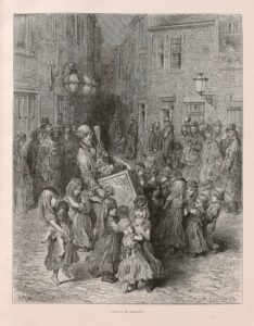 Livre remarquable, pour lequel Gustave Doré s’était attaché les services de deux détectives de sorte qu’il put pénétrer jusque dans les bouges. Son enquête sur le Londres populaire est particulièrement saisissante. L’illustrateur joue à la perfection des contrastes entre un Londres mondain et léger figuré par des vues nimbées de brume et d’élégance à la manière de Constantin Guys (champs de course, réunions de la bonne société) et un Londres populaire, démuni, dont les images sont noires et brutales, grouillantes, souvent nocturnes, dans un style qui rappelle plutôt Daumier. Parmi celles-ci, la promenade des détenus de la prison de Newgate est fameuse ; elle servit de modèle à un tableau de Vincent Van Gogh.