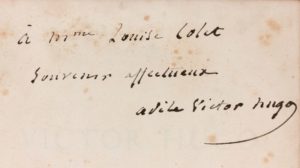 « A Mme Louise Colet. Souvenir affectueux. Adèle Victor Hugo ».