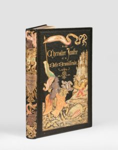 LAFON (Jean-Bernard, dit Mary-Lafon). Les aventures du chevalier Jauffre et de la belle Brunissende. Paris, Librairie Nouvelle, 1856. Grand in-8, cart. percaline bleue, jolis fers spéciaux dorés et mosaïq. au dos et sur les plats, tranches dorées (Cart. de l’éditeur).