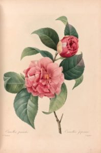 Pierre Joseph Redouté (1759-1840) « le Raphaël des fleurs » fut nommé par la reine Marie-Antoinette peintre et dessinateur de son cabinet et son professeur particulier. Redouté, durant les leçons qu’il lui donnait, groupait dans des vases du Japon ou de Sèvres les plus belles fleurs des serres de Versailles, et, sous les yeux de la reine, il en faisait en moins d’une heure une splendide aquarelle. Il joignait à son talent de peintre une solide connaissance de l’horticulture. S’attachant aux espèces dédaignées et surtout aux roses anciennes des jardins d’Europe, son iconographie demeure une source précieuse pour l’identification de fleurs devenues rares.