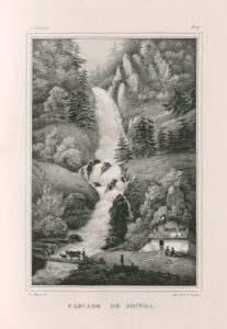 SUISSE. – Senonnes (Vte de) et Pingret (Ed.). Promenade sur le Lac Wallenstadt et dans le pays des Grisons. P., Firmin-Didot, 1827. Infolio, demi-veau vert, dos orné, n. r. (Rel. de l’époque).