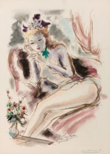 Exemplaire dédicacé par F. Carco et Dignimont : « en souvenir cordial du tandem », enrichi d’une superbe aquarelle originale au format du livre, dédicacée au même et d’une carte de voeux écrite au dessous d’une lithographie originale en couleurs.