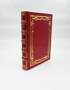 FRANCE (A.). Le Puits de Sainte Claire. P., Le Livre contemporain, 1908. In-4 maroq. rouge sang, dos orné, entrelacs d’un double jeu de 6 fil. encadrant les plats, doubl. de maroq. lavall. avec décor id., gardes moire de même ton, double gardes, tr. dor. sur témoins, couv. et dos cons. (Joly fils).