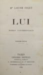 On joint, du même : Lui. Paris, Bourdilliat, 1860. In-12, demi-veau aubergine (Reliure de l'époque). Troisième édition donnée l'année de l'originale. Pâle mouillure marginale, rousseurs éparses.