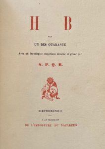 [MÉRIMÉE (Prosper)] — H. B., par un des quarante. Eleutheropolis [Bruxelles, Poulet-Malassis],