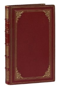 Paris, A. Levavasseur, Urbain Canel, 1830. In-8, maroquin rouge à long grain, double encadrement de triples filets dorés, fers dorés aux écoinçons reliés par un filet pointillé, dos orné à la grotesque, dentelle intérieure, tranches dorées (Reliure vers 1860).Édition originale rare du premier recueil poétique de Musset, tiré à 500 exemplaires seulement.
