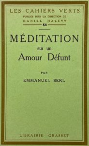 BERL (Emmanuel) — Méditation sur un amour défunt.