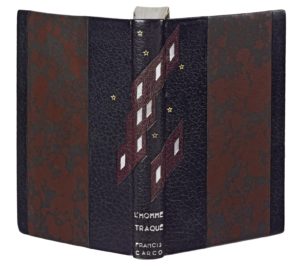 Paris, Albin Michel, 1922. In-12, demi-maroquin brune à bandes, dos lisse traversé obliquement de bandes de maroquin havane se poursuivant sur les plats ornées d’étoiles dorées et de losanges au palladium, dos lisse titré au palladium, tête argentée, couverture et dos (Paul Bonet).Édition originale.