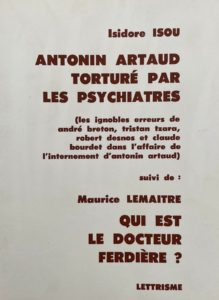 ISOU (Isidore) — Antonin Artaud torturé par les psychiatres (les ignobles erreurs de André Breton, Tristan Tzara, Robert Desnos et Claude Bourdet dans l'affaire de l'internement d'Antonin Artaud). Suivi de : Maurice L