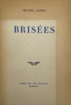 Brisées. Paris, Mercure de France, 1966. In-8, broché. Édition originale. Couverture partiellement insolée.