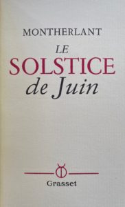 MONTHERLANT (Henry de) — Le Solstice de juin.