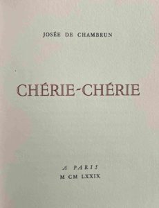 CHAMBRUN (Josée de) — Chérie-Chérie. Paris, s.n.,