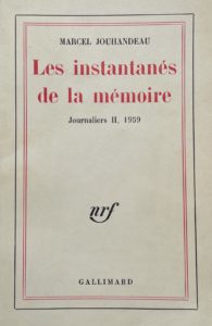 JOUHANDEAU (Marcel). Les Instantanés de la mémoire. Journaliers II, 1959. Paris, Gallimard, 1962. In-12, broché. Édition originale. Envoi autographe signé de l’auteur : Pour Georges Palewski, en souvenir de notre rencontre, un dimanche glacial, au Marais chez les Pourtalès.