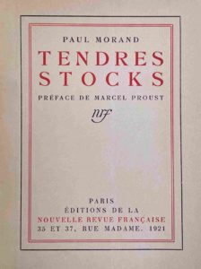 Paris, NRF, 1921. Petit in-4, bradel cartonnage marbré de mauve, couverture et dos (G. Desnaux).Édition originale, préfacée par Marcel Proust.