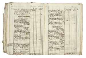2) Le Domaine de la Fin Fourchaud. France, Allier, Thiel-sur-Acolin, 1762-1786, 271 pages [273 numérotées], 2 pp. à la fin du volume, à l’encre brune sur papier. Reliure de plein vélin avec attaches. Dim. : 270 x 210 mm. Consignes de l’ensemble des recettes et dépenses du domaine De La Fin Fourchaud. Au début du XVIIIe siècle, la famille de Champfeu transmet la terre de La Fin à l’écuyer Michel de la Barre, grand-père d’Henri-Maurice (Franc̜ois Alexandre Aubert de La Chesnaye-Desbois, Dictionnaire de la noblesse, contenant les généalogies, l’histoire & la ..., Tome I, Paris, 1770, p. 748), propriétaire jusqu’au début du XIXe siècle.