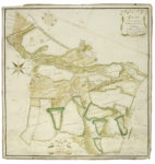 11) Plan géométrique de la communauté d’Azelle située dans les paroisse de Thiel et de Saint-Pourçain sur Besbre levé en 1766 par le sieur Delageneste commissaire et expédié en janvier 1787 par moi Feignoux [le Jeune]. Plan tracé à l’encre aquarellé (quelques déchirures). Dim. : 770 x 785 mm.