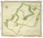 1) Plan [géométrique] du tenement de Bouquessier situé en la paroisse de Chevagne, mouvant en partie de la seigneurie de la Fin. Levé par le seigneur Girault de Mimorin en 1774. Plan tracé à l’encre aquarellé, entoilé. Dim. : 760 x 660 mm.