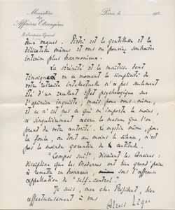 Superbe lettre de l’écrivain, prémonitoire, devant la montée du nazisme en Allemagne : (…) Votre éloignement me fait mieux sentir chaque jour tout ce que signifie pour moi, dans la vie de travail du Quai d’Orsay, le luxe humain d’un commerce d’esprit et de cœur. Je suis heureux d’imaginer en ce moment l’actif loisir dont se nourrit votre double méditation, diplomatique et littéraire (…). Il est bien qu’à une époque où l’amplitude humaine semble en raison inverse de celle des événements, il y ait encore des hommes et français pour sauvegarder "l’humanisme" dans son acception étymologique la plus large. J’aimerais lire, par-dessus votre épaule, quelques unes des pages dont Broglie en ce moment vous fournit peut-être le prétexte encore plus que le thème. Je pense aux lignes d’une fière préface, "les Amours d’un poête", où vous avez réservé les droits de l’homme politique sur la chose littéraire (…). Gardez toute liberté d’esprit et puisse un instant encore, en dépit de la presse, la lecture du poête créole, vous délivrer "du temps, de l’espace et du nombre." Tout est calme ici. C’est le creux entre deux vagues (…). La sérénité et la maîtrise dont témoignent en ce moment la simplicité de votre retraite intellectuelle, n’a pas seulement été d’un excellent effet psychologique sur l’opinion inquiète (…). Le mystère même pour la foule, ou tout le moins le silence, n’est pas la moindre garantie de certitude (…).