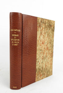 CASTAING (Jean). Sens de la chasse. Paris, La Toison d’Or, s. d. [1954]. In-8° carré, demi-chagrin rouge, dos à nerfs, tête dorée, couverture illustrée en couleurs conservée (reliure de l’époque). ÉDITION ORIGINALE. Aquarelles par...