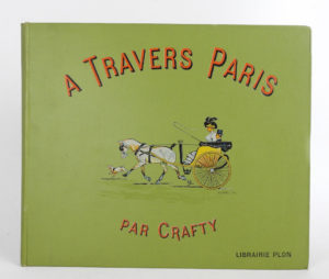 CRAFTY (Victor Géruzez, alias). A travers Paris. Paris, E. Plon, Nourrit et Cie, Imprimeurs-Éditeurs, s. d. In-8° oblong, percaline vert tilleul de l’éditeur, titre et décor personnalisé ornant le premier plat (M. Enegl rel.). Dessins dans...