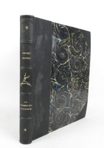 illustrations dont quatorze aquarellées à la main par Henri MARION, trois à pleine page et une répétée sur la couverture. Tiré à 645 exemplaires, celui-ci (n° 466), un des 600 sur vélin avec ILLUSTRATIONS PEINTES À LA MAIN. Envoi de l’auteur au Général de La Ferté Sénectaire sur le faux-titre. Thiébaud-Mouchon, 1119/1120.