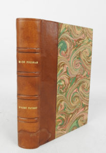 au centre des plats, dos à nerfs, tranches dorées, non rogné (Chambolle-Duru - 1869). Un titre orné de la marque typographique du baron Pichon, un faux-titre orné d’un encadrement d’armoiries, un « frontispice », 21 figures sur quatorze planches gravées à l’eau-forte par Frédéric VILLOT, reproduisant les miniatures du manuscrit original ; lettrines. « Tiré à petit nombre sur hollande. » BEL EXEMPLAIRE en MAROQUIN aux ARMES de René de Poilloüe de SAINT-PÉRIER (1877-1950) de l’un des plus anciens traités de vénerie composé en français. De la bibliothèque Gustave Chartener, avec-ex-libris. Souhart, 188 ; Thiébaud, 406-407